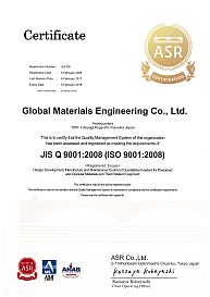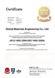 「Global Materials Engineering Co., Ltd. has acquired ISO9001 and ISO14001 certification」